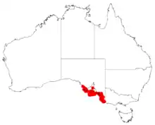 It is situated along the south coast of South Australia where its range extends from around Coffin Bay on the Eyre Peninsula in the west to around Mount Gambier in the east where it is mostly found growing in sandy or loamy soils as a part of open scrub communities and is often associated with Mallee Eucalyptus species.[2]