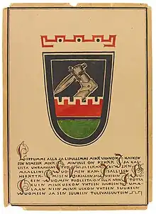 Members of the AKS were sworn in before the black flag. From 1923, oaths were held twice a year, on Day of the Finnish Identity and Independence Day. In the spring of 1924, an oath was also introduced, which, in addition to the flag, became the AKS' second main rite.[1]