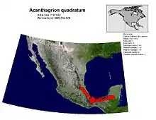 Acanthagrion quadratum is found in ponds with abundant vegetation, slow creeks and open marshes; also in marshy areas under the vegetation cover. It is distributed from the southern United States to Costa Rica. In Mexico, it has been recorded in the states of Campeche, Chiapas, Coahuila, Hidalgo, Nuevo León, Oaxaca, Puebla, Querétaro, Quintana Roo, San Luis Potosí, Tabasco, Tamaulipas, Veracruz and Yucatán. It is an abundant species.