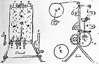 During this time he began experiments relating to the production of 'moving' photographs, designing a camera that utilised sixteen lenses,[14] which was the first invention he patented. Although the camera was capable of 'capturing' motion, it wasn't a complete success because each lens photographed the subject from a slightly different viewpoint and thus the image would have jumped about, if he had been able to project it (which is unknown).