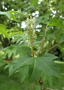 Acer erianthum is a tree up to 15 meters tall with greenish-gray bark. Leaves are non-compound, thin and papery, usually with 5 long tapering lobes but occasionally 7.[2][3]