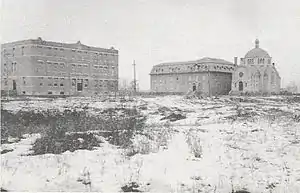 Around 1903, Delaere and other Redemptorists working in the Brandon area began to visit the Yorkton area once a month. Delaere himself was stunned by the amount of work required and reported that the territory was actually half the size of Belgium with only thirty to forty English families and was entirely neglected by any other Catholic clergy since the Oblates had moved out. Serafimists, Russian Orthodox priests, and Protestants had all established themselves in the area. The Redemptorists reported seventeen Protestant ministers in the Yorkton region. Delaere immediately begged for help, encouraged French Canadian seminarians to study different languages, and brought in Father Kryzhanowsky, a Basilian monk, to help him in the various colonies.[2]: 103 Father Achille Delaere also worked closely with Father Platonides Filas, the Provincial of the Basilians in Canada.[5][6]