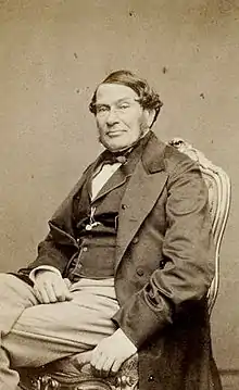 Fould was reappointed as finance minister the day after the coup d'état of December 1851, which he had helped prepare even though he was not directly involved in its execution.[1] On 22 January 1852, following the confiscation of the property of the House of Orléans, he resigned the office of minister of finance but was appointed Senator a few days later. In July 1852, he was appointed Minister of State and in December of the same year, Minister of the Imperial Household, retaining both positions until November 1860. As such, he was one of the most powerful political figures of the Second French Empire, with major influence over economic and financial matters as well as direct authority over prominent national institutions such as the Legion of Honour, the Institut de France, theaters, museums, and libraries.[1] He oversaw Napoleon III's Louvre expansion and directed the Paris Universal Exhibition of 1855. In 1857, he became a member of the Académie des beaux-arts.[5] In 1859, during the absence of Napoleon III who was campaigning in Italy, Fould was effectively in charge of France's government as Secretary of the Privy Council.[1]