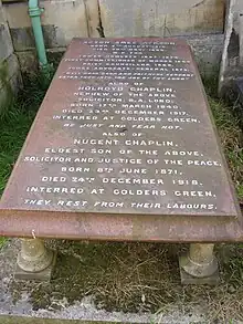 He is buried in Brompton Cemetery, London.[8]