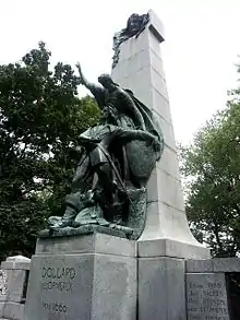 Adam Dollard des Ormeaux (July 23, 1635 May 21, 1660) is an iconic figure in the history of New France (modern day Quebec). Arriving in the colony in 1658, Dollard was appointed the position of garrison commander of the fort of Ville-Marie (now Montreal). In the spring of 1660, Dollard led an expedition up the Ottawa River to wage war on the Iroquois. Accompanied by seventeen Frenchmen, Dollard arrived at the foot of Long Sault (near present-day Carillon, Quebec) on May 1 and settled his troops at an abandoned Algonquin fort.[1] He was then joined by forty Huron and four Algonquin allies.[2] Vastly outnumbered by the Iroquois, Dollard and his companions died at the Battle of Long Sault somewhere between May 9 and May 12, 1660. The exact nature or purpose of Dollard's 1660 expedition is uncertain; however, most historians agree that Dollard set out to conduct a "petite guerre" (ambush) against the Iroquois, in order to delay (or prevent altogether) their imminent attack on Ville-Marie.[3] For these reasons, Dollard is regarded as one of the saviors of New France.[4]