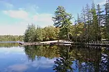 Adirondack Woodcraft Summer Camps is located in the Adirondacks in upstate New York in Old Forge. The summer camp is located in Herkimer County in the Town of Webb and encompasses 250 acres surrounding two private lakes, Lake Kan-ac-to and Lake Te-jec-na, two small kettle lakes about four miles northeast of the village of Old Forge.[7] The North Branch of the Moose River passes the camp just to the north. Woodcraft's location is considered to be in the West-Central Region of the Adirondack State Park.