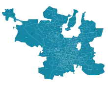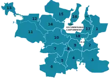 Hyderabad Corporation zones, circles and wards are divided by the Greater Hyderabad Municipal Corporation (GHMC) for its planning and development in Hyderabad, India.[1] The city of Hyderabad is divided into six zones:[2] Charminar, L. B. Nagar, Serilingampally, Kukatpally, Secunderabad and Khairatabad. Each zone is further divided into circles, thirty in total. The circles are subdivided into 150 wards, each with around 36,000 people in 2007;[3] which later increased to 40,000 - 50,000 people in 2020.[4] The GHMC is planning to increase the number of wards to 200.[5]