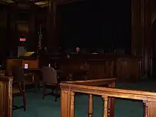 The use of the term bar comes from English custom. In the early 16th century, a railing divided the hall in the Inns of Court, with students occupying the body of the hall and readers or benchers on the other side. Students who officially became lawyers were "called to the bar", crossing the symbolic physical barrier and thus "admitted to the bar".[1] In modern courtrooms, a railing may still be in place to enclose the space which is occupied by legal counsel as well as the criminal defendants and civil litigants who are before the court.
