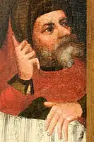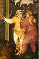 The place where it was originally located is not known. In the 19th century the painting was the property of Princess Eleonore von Schwarzenberg at Hluboká nad Vltavou. It was then transferred from state-owned Hluboká Castle to the ownership of the National Heritage Institute in České Budějovice. The picture was heavily overpainted by a Renaissance artist in 1516. During restoration undertook in 1930 (J. Bělohoubek), only the crudest overpainting was removed. Antonín Matějček, who saw the picture before 1950,[1] thus observed that it was in a poor state and was impossible to evaluate. The present-day appearance of the picture is the result of restoration undertaken between 1968 and 1969 (National Gallery Prague, V. Frömlová).[2]