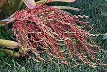 In its natural habitat, the plant, like other bromeliads, is most often pollinated by hummingbirds. However, it can also be pollinated by bees, bats, and other pollinators.[4] similar to how other bromeliads reproduce, this plant typically makes pups, although it can also breed in a normal way by making seeds.[5][6] The plant is most often seen being terrestrial, however it can be an epiphyte as well.