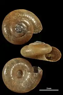 | Shell of Aegopinella pura (specimen at MNHN, Paris) | |