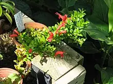 Aeschynanthus buxifolius, the box-leaf lipstick plant, is a species of flowering plant in the family Gesneriaceae, native to southern China and northern Vietnam.[1][2] An epiphyte and lithophyte, it is found growing in forests at elevations from 1,300 to 2,200 m (4,300 to 7,200 ft).[3] It has gained the Royal Horticultural Society's Award of Garden Merit as a tropical hothouse ornamental.[4]
