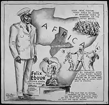 The impact of the European war was substantial in Senegal and other French African colonies. Many of the soldiers had volunteered, but the French also resorted to extensive conscription in its territories. Many of the African soldiers found army life in Europe comparatively more egalitarian than civilian life under the colonial regimes of their homelands. The mixing of African troops with troops and civilians from other races however often made colonial regimes nervous. In 1918 for example, South Africa, forced to earlier deploy armed Africans to cover manpower shortages, removed its black troops from France, because "blacks in the French front were contaminated with foreign notions about race relations and other social grievances."[15] The French employed a number of high-ranking black soldiers, such as Sosthene Mortenol, Commander of the Air Defenses of Paris. The exigencies and shared dangers of war also seemed to have created, in measure, more mutual understanding and freer communication between Africans and Europeans, although this did not translate immediately into a more just order in their homeland territories. Ironically, the last troops to surrender in World War I were the black soldiers fighting for Germany in East Africa.[9]