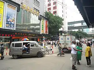 About 3 kilometres (2 mi) from Xiaobei and north of the Guangzhou railway station is Guangyuanxi, a more business orientated area with a major presence of Nigerian Igbo people.[13] The area is filled with large trademarts selling shoes, clothing, and other goods.[13] The trademarts are housed in large buildings called Tong Tong Trade Mart, Tian'en Clothing Market, Tangqi Building, Canaan Market, and Ying Fu Building. Since stricter immigration enforcement in the summer of 2013, this area has become much more dormant than before.[13]