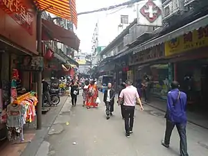The area of Xiaobei is near Xiaobei station and home to several streets catering to African and Middle Eastern residents. Since the area was home to an existing Muslim population from Ningxia and Xinjiang, many African immigrants, around half of whom are Muslims, congregated around one area of town primarily because of the convenience in finding halal food.[18] Owing to the neighborhood's history there are slightly more Muslim Africans than Christian Africans in Xiaobei.[13] The nerve center of the area is Baohan Straight Street where there are African orientated shops and restaurants.[13] The street was repaved in 2015 and many of the hawkers have departed or set up shops.[13]