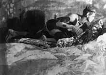In 1931, shortly after the death of Diaghilev, when some of his dancers settled in London, the Rambert Ballet took L'Après-midi d'un faune into its repertoire.[29] Leon Woizikovsky, who had danced the faun in the last years of the Diaghilev company and whom Nijinsky taught, reproduced the ballet for Rambert's company.[30] Rambert Ballet revived Faun for several years.[31] The reproduction met with criticism from Cyril Beaumont who commented in his book that the ballet becomes “meaningless, if given, as sometimes happens, without the essential nymphs.”[32]