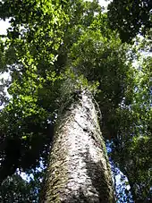 It is the largest (by volume) but not tallest species of tree in New Zealand, standing up to 50 m tall in the emergent layer above the forest's main canopy. The tree has smooth bark and small narrow leaves. Other common names to distinguish A. australis from other members of Agathis are southern kauri and New Zealand kauri.