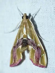 Agathodes ostentalis, the coral tree moth, is a species of moth of the family Crambidae described by Carl Geyer in 1837. It is found from India to Indonesia, including Hong Kong, Japan, Thailand and in Australia in New South Wales and Queensland.