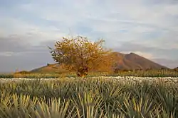 The Agave Landscape and Ancient Industrial Facilities of Tequila is a cultural UNESCO World Heritage Site in Mexico.[1] The 35,019-hectare site is part of an expansive landscape of blue agave, shaped by the culture of the plant used since the 16th century to produce the spirit known as tequila and for at least two millennia to make fermented drinks (such as pulque) and cloth.[1] Within the landscape are working distilleries reflecting the growth in the consumption of tequila in the 19th and 20th centuries.[1] Today, this agave culture is seen as part of Mexican national identity.[1] The Tequila landscape has contributed to many works of art such as film, music, dance, and paintings.[2]
