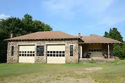 The Aggie Workshop is a historic former school building on Marion County Road 5010 in Bruno, Arkansas. It is a single-story L-shaped structure, built out of local stone and topped by a hip roof with Craftsman-style exposed rafter tails. The WPA-approved building was built in 1935 by the Lincoln Aggie Club and was used as a vocational stone and cement workshop, as part of the local Bruno Agricultural School. A cement swimming pool, contemporaneous to the building's construction, is located in the crook of the L.[2]