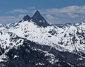 Agnes Mountain is a dramatic, but relatively unknown, peak in the North Cascades of the US state of Washington. It is not of regionally high elevation, but it rises steeply from low footings; Beckey calls it "an immense Matterhorn-shaped massif."[3] For example, its north face drops 1,800 feet (549 m) from the summit to Agnes Creek in only 1.5 miles (2.4 km).