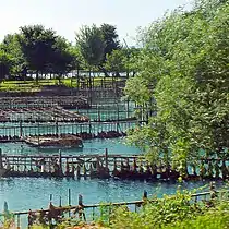 Extensive marine fish cultivation has been practiced in the country in the 1950s.[12] The marine finfish industry is an inshore and offshore sea cage-farming sector. Trouts are developed mainly in the southeast, southwest and north, while carps are primary found in the center and north. Marine finfish culture is dominated by species including rainbow trout, european bass, gilt-head bream, common carp, silver carp, bighead carp, grass carp and ohrid trout.[13][14]