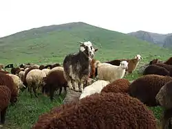 Agriculture is carried out mainly in the valleys and mountainsides of Armenia's uneven terrain, with the highest mountain pastures used for livestock grazing.[2] Fertile volcanic soil allows cultivation of wheat and barley as well as pasturage for sheep, goats, and horses.[2] With the help of irrigation, figs, pomegranates, apricots, and olives also are grown in the limited subtropical Aras River valley and in the valleys north of Yerevan, where the richest farmland is found.[2][5] Armenia also produces peaches, walnuts, and quince, and its brandy enjoys a worldwide reputation.[2]