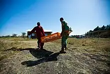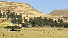 Ethiopia's agriculture is plagued by periodic drought, soil degradation[1] caused by overgrazing, deforestation, high levels of taxation and poor infrastructure (making it difficult and expensive to get goods to market). As 85% of Ethiopians rely primarily on land (agricultural and pastoralism) for their livelihoods and a quarter of the population lives below the national poverty line, land degradation is a major concern.[2] Yet agriculture is the country's most promising resource. A potential exists for self-sufficiency in grains and for export development in livestock, grains, vegetables, and fruits. As many as 4.6 million people need food assistance annually.