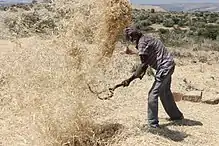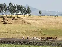 According to Ethiopia farming, this ploughing the land to prepare the soil for sow requires around two quarter of a year.[32] ploughing the land to soften the land takes three months and from sowing and seedling to the harvesting of the crops requires three to four months. Ethiopian farmers plough their land by combining the above tools for such three months to get yearly consumed food. The major product in are teff, wheat, maize, sesame, Niger, linseed etc. in addition to these cereals, they produce different types of fruits and coffee which are not seasonal.