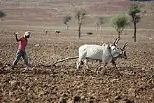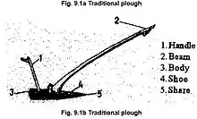 Almost all farming tools in Ethiopia are traditional and made from different types of wood.[31] These tools includes sickle, pick axe, plough shaft, ploughshare, plow, beam and animal force as a machines. The plough shaft, beam and ploughshare are made of wood and the sickle, pick axe, plow are made of metal. Ploughing the land using these tools is ambiguous and time-consuming.