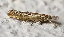 Agriphila tolli is a species of moth in the family Crambidae.[1] It is found in Ukraine, Romania, Bulgaria, Turkey, Greece, the Republic of North Macedonia, Albania, Montenegro, Hungary, Slovakia, the Czech Republic, Austria, Italy and on Corsica, Sicily and Crete.[2]