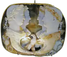 - ↑ It has also been proposed that the two on the right are Tiberius and Livia;[58] however historian Kleiner notes that Claudius and Agrippina the Younger would probably be paired with another married couple, i.e., pairing them with a mother and son would be an unusual juxtaposition. In addition, if the man on the right were Tiberius, it is unlikely he would be depicted as being so young.[59]