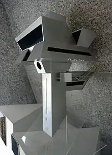 From the 1960's onward, Hernández Navarro disregarded the popular architectural styles of his time in favour of creating futuristic and distinctly Mexican architectural forms. With the use of industrial materials such as concrete, he was able to achieve the construction of monumental structures which referenced a Pre-Columbian past.[8] Although he claimed his buildings and sculptures did not adhere to a specific style, his innovative structures exhibit cohesive elements which evoke the symbiology and heritage of Pre-Colombian Mexico while demonstrating a unity of structure, form and function, with a modern flair. Hernández Navarro's sculptural forms were heavily influenced by Mesoamerican cosmogony in both the interior and exterior spaces he created and with exposed concrete as his preferred material, he captured the essence of Pre-Columbian edifices while producing innovative modern structures. Trained as a sculptor, in addition to being an architect, his architectural structures were informed by sculptural elements which were heavily influenced by his Mesoamerican heritage.[9] Hernández Navarro believed that architecture should be seen as a historical bridge, and through symbolism and form one could defend their cultural identity.[10]