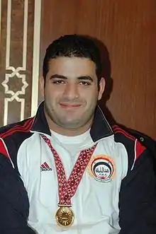 Ahed Joughili (Arabic: عهد جغيلي; born October 10, 1984) is a Syrian weightlifter, who competed in the 105 kg division at the 2008 Summer Olympics and 2012 Summer Olympics.[1] Joughili won a silver medal at the 2005 Mediterranean Games and a gold medal at the 2006 Asian Games. Joughili claimed both gold medals for the 105 kg snatch and clean&jerk at the 2009 Mediterranean Games.[2][3]