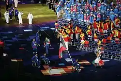 Almutairi, first wheelchair behind the flag bearer, at the opening ceremony of the 2012 Paralympics.