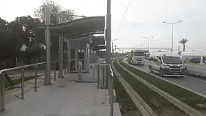 Ahmed Adnan Saygun Sanat Merkezi is a station on the Konak Tram line in İzmir, Turkey. Originally named Güzelyalı, it is located along Mustafa Kemal Coastal Boulevard in west Konak.[1] The station consists of two side platforms, one on each side of the boulevard.