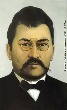 Ahmet Baitursynuly (Kazakh: Ахмет Байтұрсынұлы, احمەت بايتۇرسىنۇلى, romanized: Ahmed Baitūrsynūly, [ɑχmʲet bɑjto̙ɾsəno̙ɫɯ]; Russified: Ахмет Байтурсынов) (c. 5 September 1872 — 8 December 1937) was a Kazakh intellectual who worked in the fields of politics, poetry, linguistics and education.