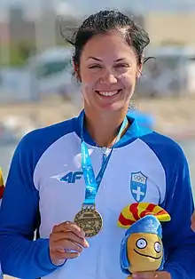 Aikaterini "Katerina" Nikolaidou (Greek: Αικατερίνη "Κατερίνα" Νικολαΐδου; born 22 October 1992) is a Greek rower. Nikolaidou represented Greece,[1][2] along with Sofia Asoumanaki at the 2016 Summer Olympics in Rio de Janeiro, Brazil, finishing in the 4th place (Double sculls).[3][4][5] She also won a silver medal in the lightweight single sculls at the 2013 World Rowing Championships[6] and she won the gold medal in the lightweight single sculls at the 2014 European Champion and 2013 European Champion.[7][8][9][10][11] In 2018 she won the gold medal in the single sculls at the 2018 Mediterranean Games in Tarragona, Spain.[12][13][14][15]