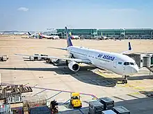 Air Astana (Kazakh: Эйр Астана / Eir Astana) is an airline and the flag carrier of Kazakhstan. The airline group is headquartered in Almaty, Kazakhstan.[1] It operates scheduled international and domestic services across 64 routes from its two hubs; Almaty International Airport, and Nursultan Nazarbayev International Airport.