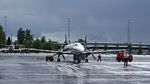 The airline was owned 40% by Nordic Air, 40% by the Municipality of Ørland and 20% by North Flying.[2] All operations were flown by North Flying,[3] who operate a 19-seat Fairchild Metro 23 in Air Norway livery.[4] The municipality subsidised the route with NOK 1 million per year.[5] The company had a managing director in a 20% position, plus one person who coordinated booking on an hourly basis.[3] In 2008, the airline had a revenue of NOK 16 million and made NOK 800,000 in profit.[6] Ørland Airport is the civilian section of the military Ørland Main Air Station. Traditionally, the main customer group for Air Norway was military personnel.[7]