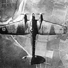 The Do 17Z was an older type of German bomber that was no longer in production by the start of the Battle. Still, many Kampfgeschwadern still operated the Dornier, known as "the flying pencil" due to its sleek fuselage. Its air-cooled radial BMW engines meant that many of these aircraft were able to survive fighter attack because there was no vulnerable cooling system to disable.[70] The Dornier was also manoeuvrable, and as a result was popular in the Luftwaffe. The main problem with the Dornier was its limited 200 mile combat range, when fully loaded with bombs. Its bomb carrying capacity was also limited to 2,205 lbs.[71] Older versions of the Do 17, mainly the E-1, were still used for weather reconnaissance duties.
