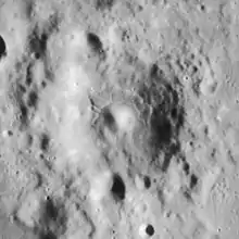 Airy is a lunar impact crater located in the southern highlands. It is named in honour of British astronomer George Biddell Airy.[1] It forms the southernmost member of a chain of craters consisting of Vogel, Argelander, and Airy. A little further to the south lies Donati. Airy has a worn, and somewhat polygonal rim that it broken at the northern and southern ends. It has an irregular floor and a central peak.