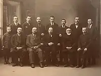 Aisa (back row, second from left) and fellow Tampere Tatars with politician Sadri Maksudi (sitting, middle), year 1920.