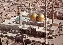 Al-Atabat Al-Aliyat (Arabic: العتبات العالیات[1][2] lit. sublime thresholds)[3][4] Al-Atabat Al-Aliyat, which is also known as Al-Atabat Al-Muqaddasa (literally: holy doorsteps) are the shrines of six Shia Imams which are in four cities of Iraq, namely Najaf, Karbala, Kadhimiya and Samarra;[5][6][7] and actually the whole of these Imams' shrines (graves) are called Atabat Aliyat.[8] The mentioned cities have significance due to shrines of those six Shia Imams who have been buried there.[9]