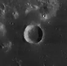 Al-Bakri (Arabic: البكري) is a small lunar impact crater on the northwest edge of Mare Tranquillitatis. It is named after the Spanish Arab geographer and historian Abu Abdullah al-Bakri.[1] It is just south of the eastern arm of the Montes Haemus that borders the Mare Serenitatis to the north. To the east-northeast is the prominent crater Plinius. South of the crater are the rilles of the Rimae Maclear.