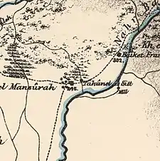 ![]() Al-Mansura (Mansoura) marked on John MacGregor's map. January 1869. | |
