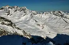 Alagna Valsesia is part of the huge Monterosa Ski area, a ski-resort at the feet of Monte Rosa which connects three different valleys in Piedmont and in Aosta Valley, with 180 km of runs. Through Passo dei Salati at an elevation of 2,980 metres (9,780 ft), Alagna is connected with Gressoney-La-Trinité and Champoluc. Since 2017, a new chair lift, brings from Cimalegna at an elevation of 3,030 metres (9,940 ft) just above the Passo dei Salati permitting direct access to the freerides routes in the Vallone delle Pisse.
