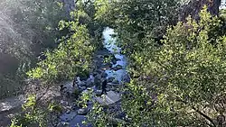 Alamitos Creek or Los Alamitos Creek[2] is a 7.7-mile-long (12.4 km)[3] creek in San Jose, California, which becomes the Guadalupe River when it exits Lake Almaden and joins Guadalupe Creek. Los Alamitos Creek is located in Almaden Valley and originates from the Los Capitancillos Ridge in the Santa Cruz Mountains, near New Almaden. This creek flows through the Valley's Guadalupe Watershed, which is owned by the Santa Clara Valley Water District. The creek flows in a generally northwesterly direction after rounding the Los Capitancillos Ridge and the town of New Almaden, in the southwest corner, before ambling along the Santa Teresa Hills on northeast side of the Almaden Valley. Its environment has some relatively undisturbed areas and considerable lengths of suburban residential character. Originally called Arroyo de los Alamitos, the creek's name is derived from "little poplar", "alamo" being the Spanish word for "poplar" or "cottonwood".[4]