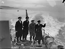 He was appointed Honorary Colonel of the newly formed 74th (City of Glasgow) Heavy Anti-Aircraft Regiment, Royal Artillery, in the Territorial Army on 11 January 1939, and held the position until 1944.[2][3] Inverclyde was on board the RMS Lancastria when she was sunk off St Nazaire on 17 June 1940. He was rescued by the crew of HMT Cambridgeshire, a 443-ton anti-submarine trawler, which had been requisitioned by the navy in August 1939; she was then given a 4-inch gun, machine guns and depth charges, she herself surviving the war and, after returning to peacetime trawling in 1945 as the Kingstone Sapphire, was scrapped in 1954.
