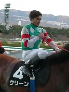 Alan Garcia (born October 2, 1985) is a Peruvian thoroughbred horse racing jockey. He was Peru's leading apprentice jockey in 2003 and in that same year he began racing in the United States at the Meadowlands Racetrack where he was also the leading apprentice. His father and grandfather were both jockeys in Peru. He is currently married and lives in Port Saint Lucie, Florida, with his wife and 3 sons. Garcia got his big break in 2007 when he won the Breeders' Cup Filly & Mare Turf. This was his first ever Breeders' Cup ride. The win, on Lahudood, meant that he was the third jockey ever to win his first Breeders' Cup race in his first attempt.[1]